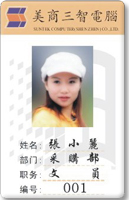 人像卡又稱胸卡,也是人像識(shí)別卡,是分辨?zhèn)€人資料的信息卡,就是將人像、姓名、編號(hào)、圖像、條形碼及其它資料直接打印在PVC材質(zhì)上,可以用來(lái)做各類工作牌、出入卡、胸卡、會(huì)員卡、暫住卡、彩照信用卡、通行證等。