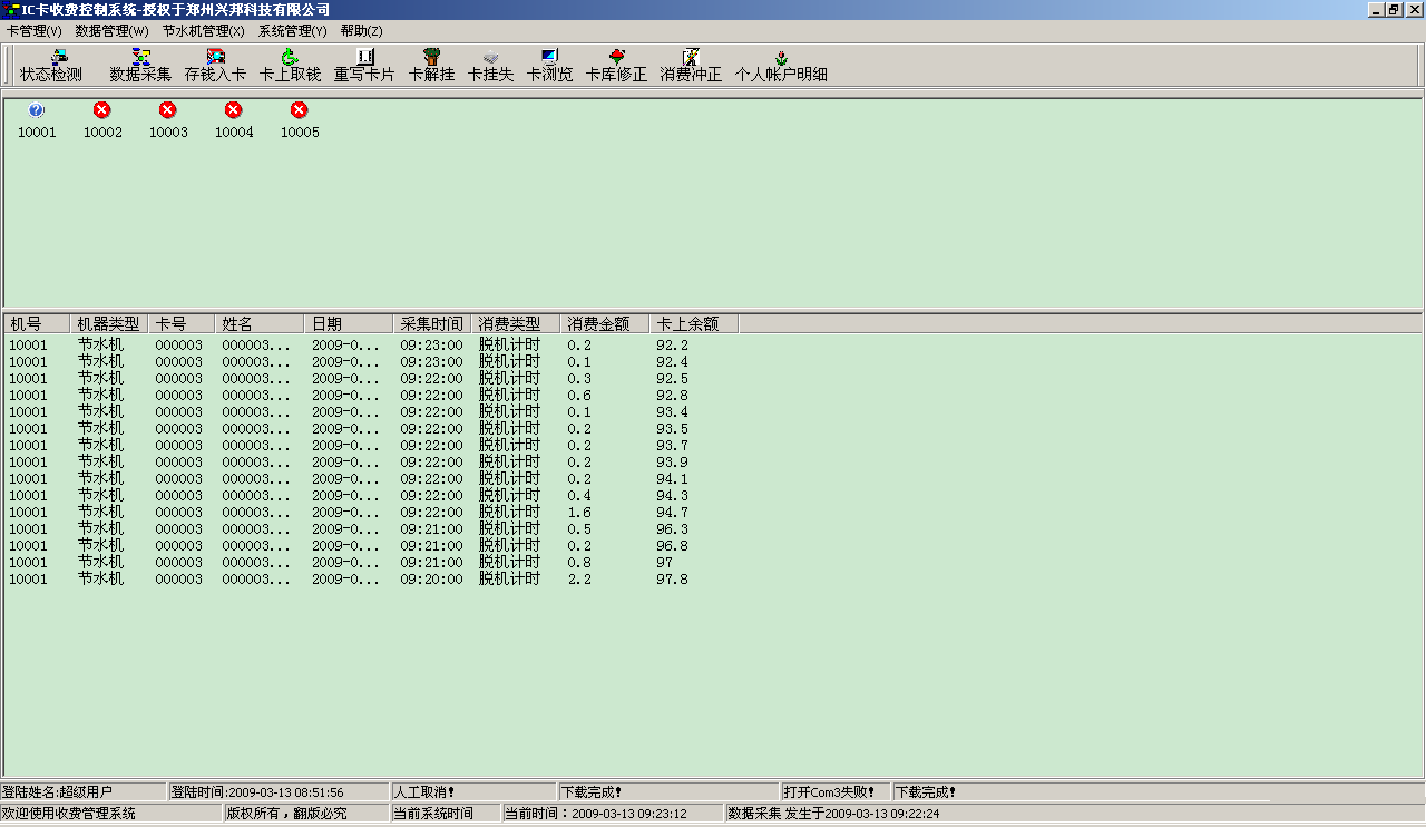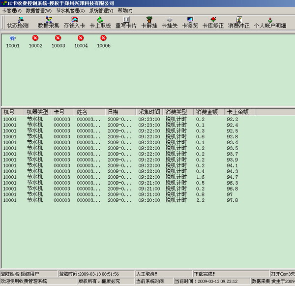 數(shù)據采集窗口用于查看數(shù)據的采集情況,在進行消費的時候,最好不要對水控機進行數(shù)據采集,我們不建議對機器進行邊操作邊進行數(shù)據采集。