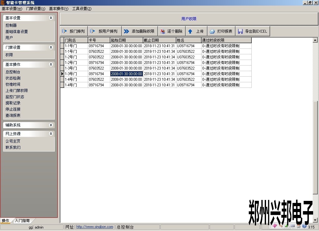 點擊菜單門禁設置—>權限。進入卡信息開門權限管理界面。如下圖