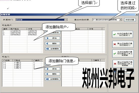 允許已選用戶通過已選定門:把選擇的用戶的開門權限加到數據庫中??梢栽偻ㄟ^上傳功能進行上傳到控制器中。