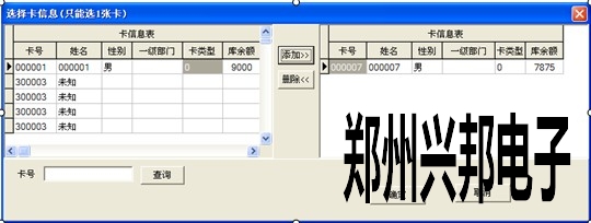 在左邊的卡信息表中選擇掛失的卡號(hào),單擊[添加]按鈕添加到右邊的卡信息表中。