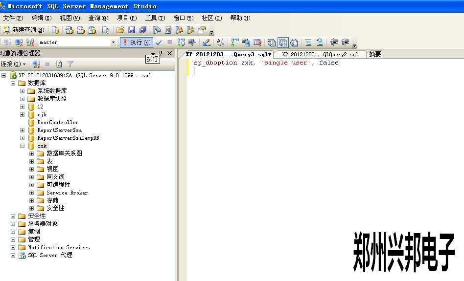 3. 輸入登錄名和密碼后,按"連接"按鍵,會進(jìn)入下一下畫面,在此畫面輸入sp_dboption 數(shù)據(jù)庫名, 'single user', false此命令