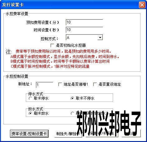 是否初始化水控器,該復(fù)選框中對(duì)管理卡來(lái)說(shuō)的。如果在設(shè)置管理卡的時(shí)候選中該復(fù)選框,使用管理卡設(shè)置預(yù)扣費(fèi)率的同時(shí)也初始化了水控機(jī)上的所有消費(fèi)數(shù)據(jù)。