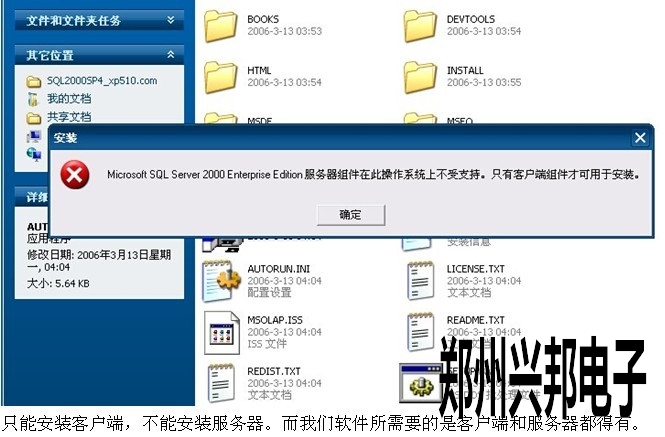只能安裝客戶(hù)端,不能安裝服務(wù)器。而我們軟件所需要的是客戶(hù)端和服務(wù)器都得有。