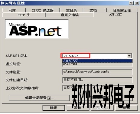 2)查看默認(rèn)網(wǎng)站屬性中ASP.NET的版本,如下圖所示,必須是2.0.50727