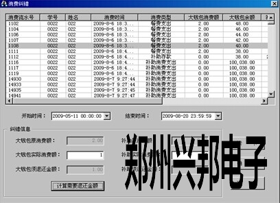 Ø 單擊【讀卡】,在記錄表中單擊選擇消費(fèi)錯誤的那條記錄,輸入應(yīng)該消費(fèi)扣除的實(shí)際大錢包及補(bǔ)助金額,