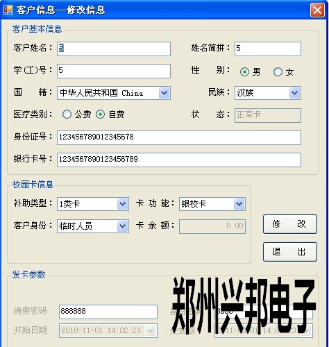 注意:學工號是不能修改的,卡一旦發(fā)行后學工號是不允許修改的,學工號在系統(tǒng)中是唯一標識,不允許重復(fù)。