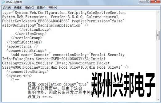 軟件是通過webservice來調(diào)用中心庫的.所以可以在webservice里找到正在使用的中心庫,首先找到創(chuàng)建webservice的路徑,然后以記事本方式打開Web,到<add name="Connstr" connectionString="Persist Security Info=False;Data Source=USER-20140509XK\SA;Initial Catalog=zxk20141203;User ID=sa;Password=hnzz;Packet Size=4096;Pooling=true;Max Pool Size=100;Min Pool Size=1" />Initial Catalog=zxk20141203,所以正在使用遙就是zxk20141203.
