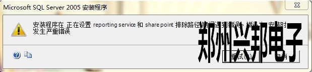 我們公司最新消費(fèi)機(jī)的刷卡消費(fèi)和數(shù)據(jù)采集,都是通過can軟件來控制和顯示的,采集的信息都通過can軟件設(shè)置存在數(shù)據(jù)庫2005中,所以安裝can軟件,首先要安裝數(shù)據(jù)庫2005,但在安裝數(shù)據(jù)庫2005時,安裝程序可能會在正在設(shè)置reportingshre point 排除路徑 期間遇到錯誤,遇到的錯誤如圖所示
