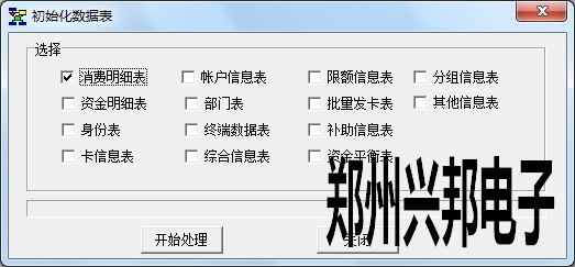 系統(tǒng)管理中數(shù)據(jù)初始化是可以選擇性的清空信息統(tǒng)計(jì)表的數(shù)據(jù),可以多選也可以只選擇一個(gè)。選擇下圖中的消費(fèi)明細(xì)表,點(diǎn)擊開始處理,在是否初始化點(diǎn)擊是之后就可以對(duì)消費(fèi)明細(xì)表進(jìn)行清空,清空后表中無數(shù)據(jù),不影響其他表中的數(shù)據(jù)。