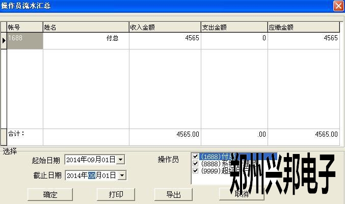 選擇好日期,點(diǎn)查詢。用當(dāng)天的收入減去支出就是當(dāng)天操作員應(yīng)繳的金額。