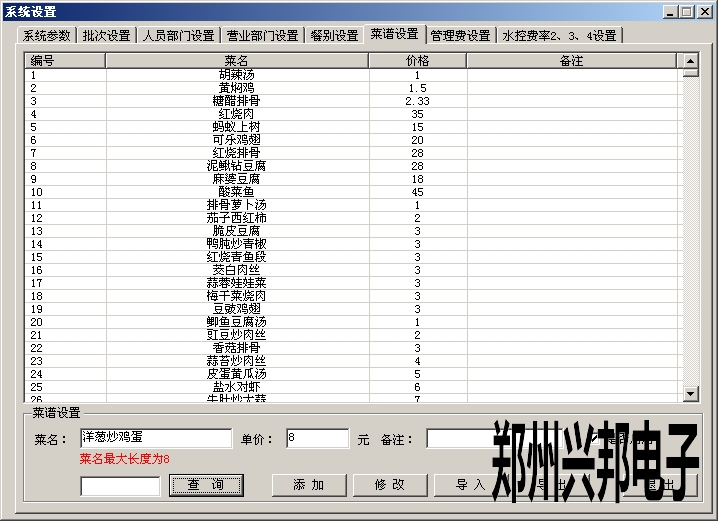 添加菜單時,輸入菜名、單價、備注(可填可不填)、選擇是否啟用,然后點擊添加即可。添加后可修改、導(dǎo)入、導(dǎo)出菜名、單價等信息,最多可添加2000個菜單,菜單添加后不能刪除,可以選擇是否啟用。菜名最大為8個漢字,可以為漢字、數(shù)字、字母或者特殊字符。