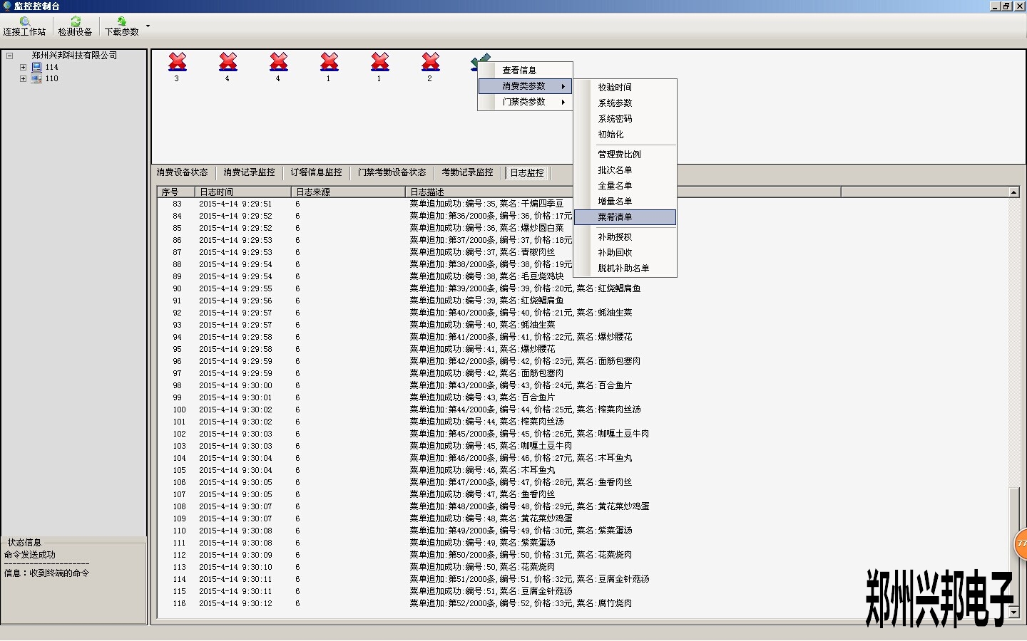 2.菜單添加完成后,需要將菜單通過下載參數(shù)的方法下載到消費機中,下載時需要將機器和軟件連通,下載方法如下圖所示: