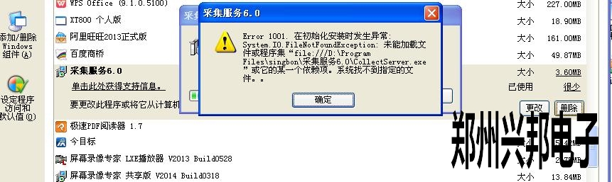 在卸載采集服務的時候,出現(xiàn)了Error:1001.在初始化安裝時發(fā)生異常,未能加載文件或程序集