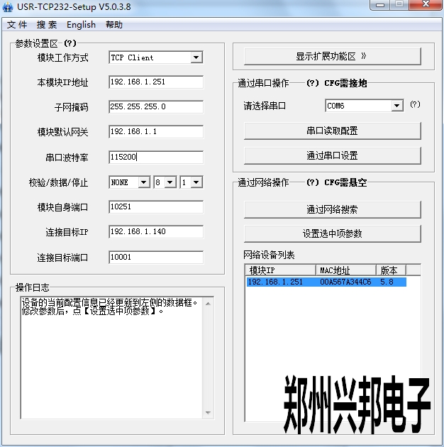 5. 模塊自身端口取所填本地ip地址的最后一空的數(shù)字,比如所填IP為192.168.1.251那么該端口就是10251。