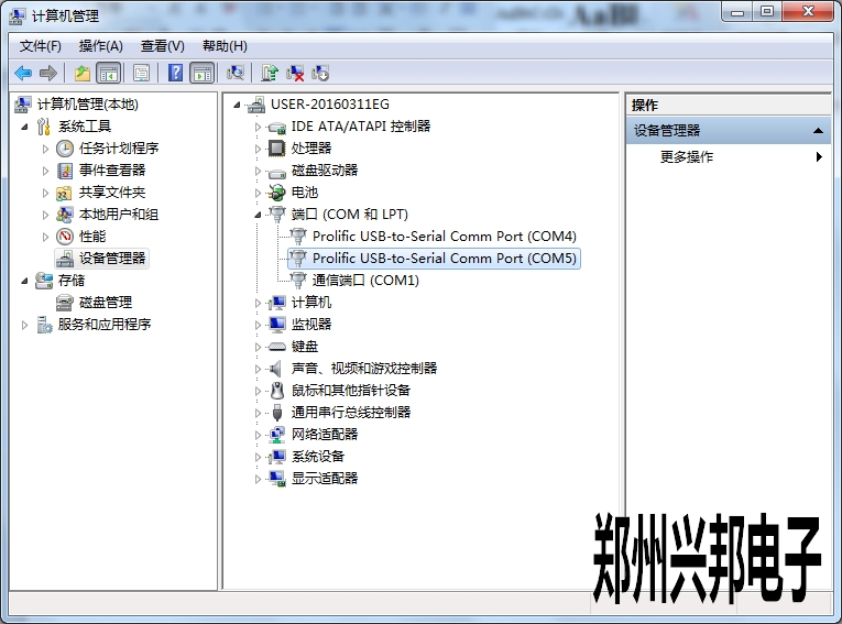 串口號查看方法,計算機(jī)右鍵——管理——設(shè)備管理如下圖所示