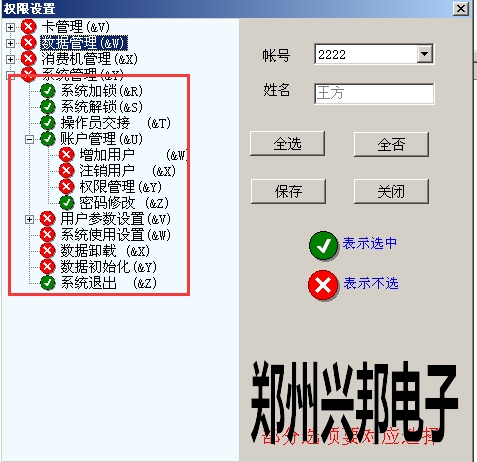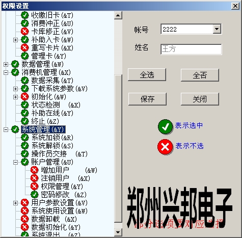 售飯水控系統(tǒng)軟件中關(guān)于操作人員權(quán)限分配的說明