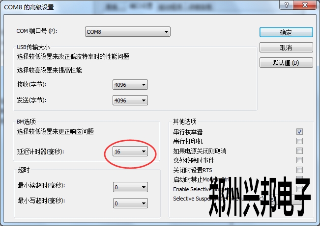IC卡售飯機(jī)在通訊時(shí)需要用到九針串口,一般電腦自帶的有九針串口,如果電腦沒有自帶九針串口,可采用串口卡或者USB轉(zhuǎn)九針串口線。在實(shí)際使用時(shí),USB轉(zhuǎn)串口使用起來比較方便,即插即用,只要電腦有USB口就行,但是USB轉(zhuǎn)串口也有缺點(diǎn),缺點(diǎn)就是不穩(wěn)定,容易造成電腦藍(lán)屏、死機(jī),針對這種情況,可采用性能好一點(diǎn)的USB轉(zhuǎn)串口線,在使用時(shí)設(shè)置一下延遲,設(shè)置的方法如下: