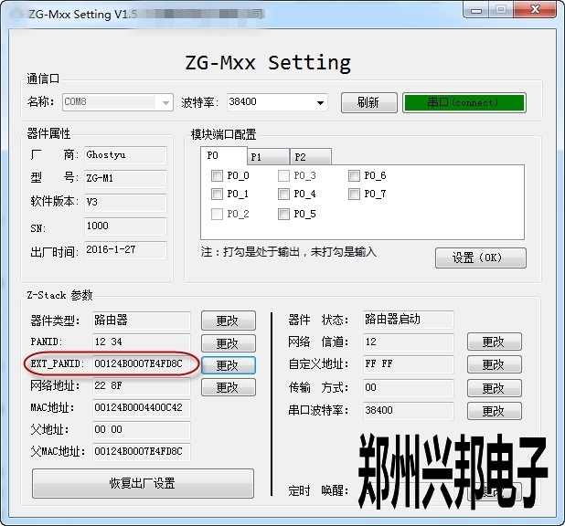 第一步:取之前的網(wǎng)絡中的一個路由器設備,使用Setting軟件讀取其擴展PANID,如下圖: