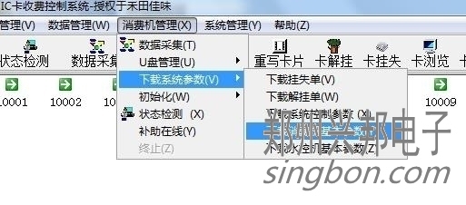 2、設(shè)好后要把機(jī)器連通。狀態(tài)檢測(cè)是綠色的對(duì)勾。然后下載一下參數(shù)。消費(fèi)機(jī)管理--消費(fèi)機(jī)基本參數(shù)。