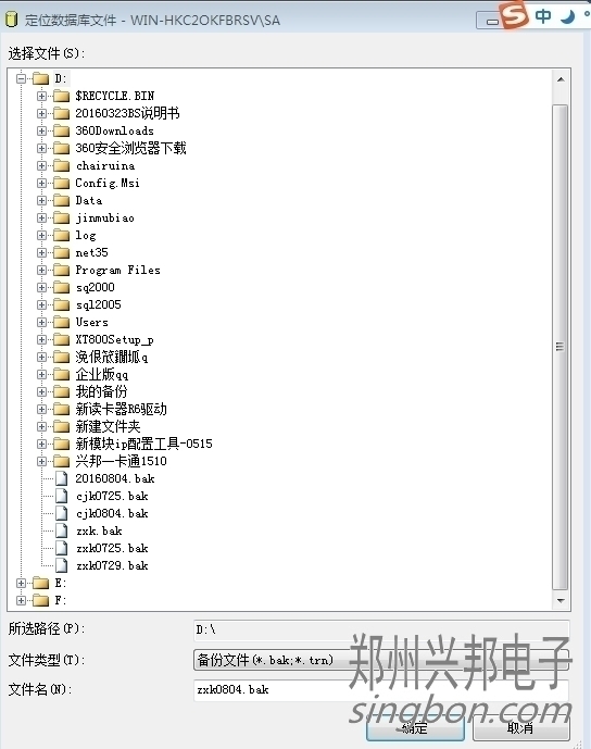 點擊“...”,出現(xiàn)下圖頁面,選擇合適的路徑,文件名以備份當天日期命名(后綴為.bak)。