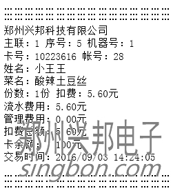 7. 對一個用戶卡,小票打印一體機在本機上的當次明細以小票的形式打印出來,設置打印張數(shù),以便客戶報銷和查賬,進行訂餐、取餐、菜單消費、直接扣費打印小票內(nèi)容各有不同。