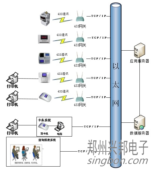 中文液晶顯示消費(fèi)機(jī)433接口網(wǎng)絡(luò)布線圖