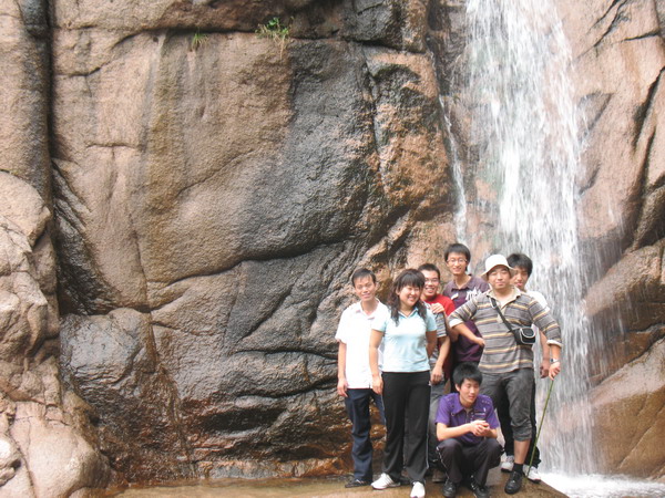 技術(shù)部員工在畫眉谷紅石瀑合影。