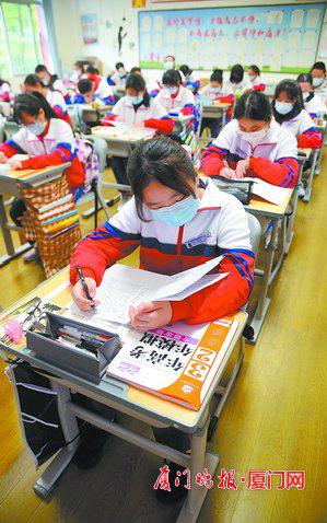 廈門網(wǎng)訊(廈門晚報(bào)記者郭文娟林珊吳笛圖/劉東華)今天早上,全市近1.6萬(wàn)名高三學(xué)生重返課堂。距離高考只有三個(gè)月了,老師勉勵(lì)學(xué)子們:“寧吃百日苦,不留終生憾!”校園里張貼的紅色標(biāo)語(yǔ),也為學(xué)生們加油鼓勁:“努力到無(wú)能為力,拼搏到感動(dòng)自己!”